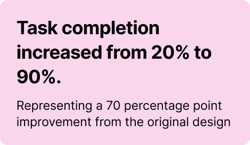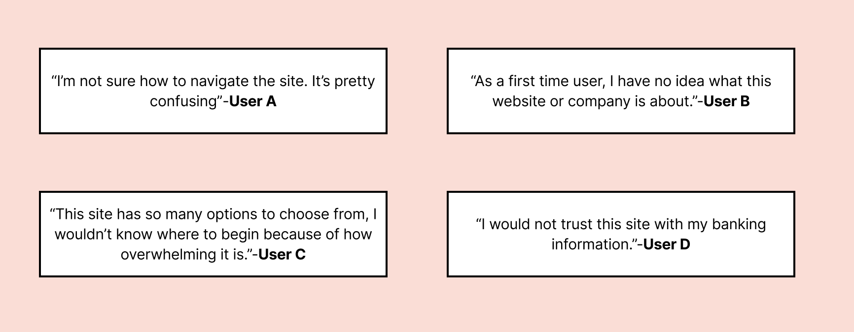 To validate these insights, I led usability testing and analyzed direct user feedback. Recurring usability issues resulted in decreased task completion for 16 out of 20 users due to lack of visual hierarchy, information overload, and the overall site not being informative. After identifying key challenges, the team prioritized high-impact improvements, with me leading the redesign of the landing page’s navigation.