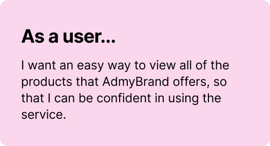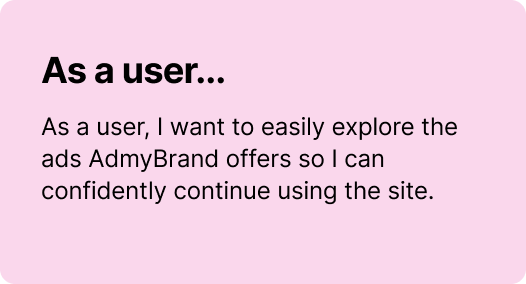 Before I could start designing, I had to identify the most important functions the client needed me to develop. Using both qualitative and quantitative insights from both users and client, I developed 2 user stories as a base for the design: