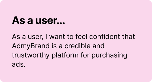 Client insights indicate that users experience difficulty navigating AdmyBrand’s website and identifying a clear starting point. Additionally, a lack of brand awareness leaves users uncertain about AdmyBrand’s credibility, resulting in low trust, poor user experience, negative feedback, and loss of users to competing platforms.