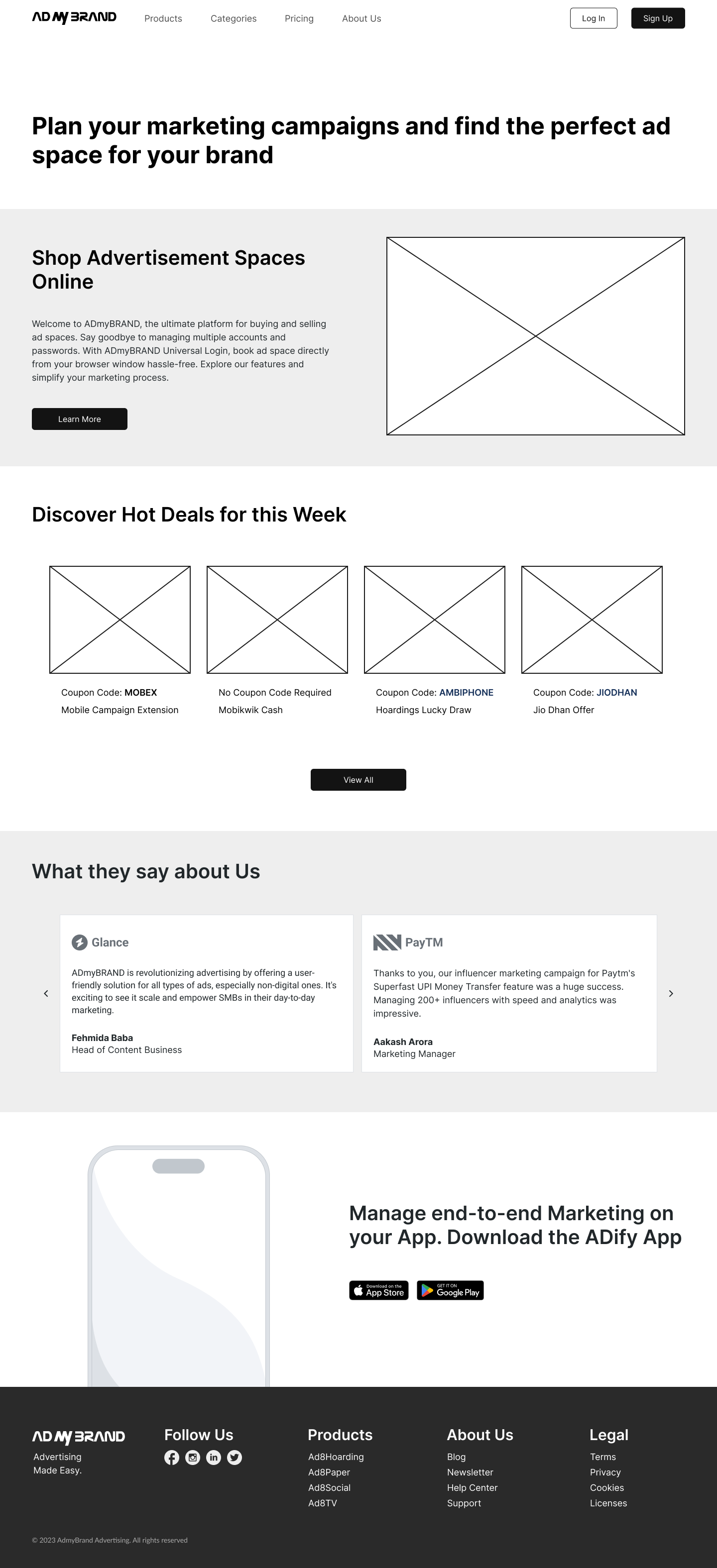 Our polished designs balanced elegance and usability. I incorporated these refinements to deliver a professional, modern, and inviting experience that helps users feel confident purchasing ads with AdMyBrand.